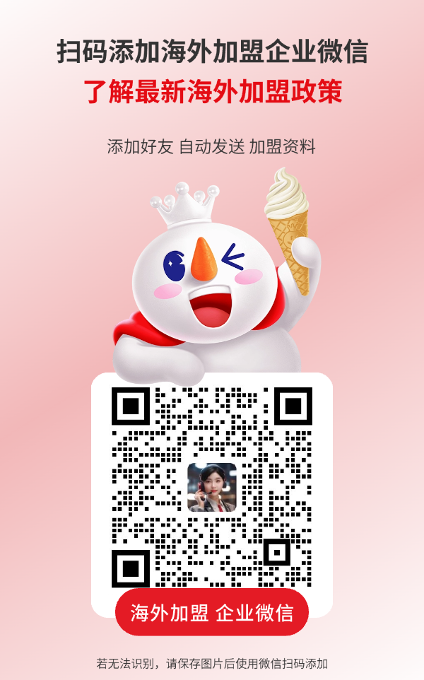 蜜雪冰城现已开放海外加盟,涵盖日本、越南、哈萨克斯坦、印度尼西亚、泰国等12个海外国家。请在右侧扫码添加海外加盟企业微信,了解更多已开放区域。