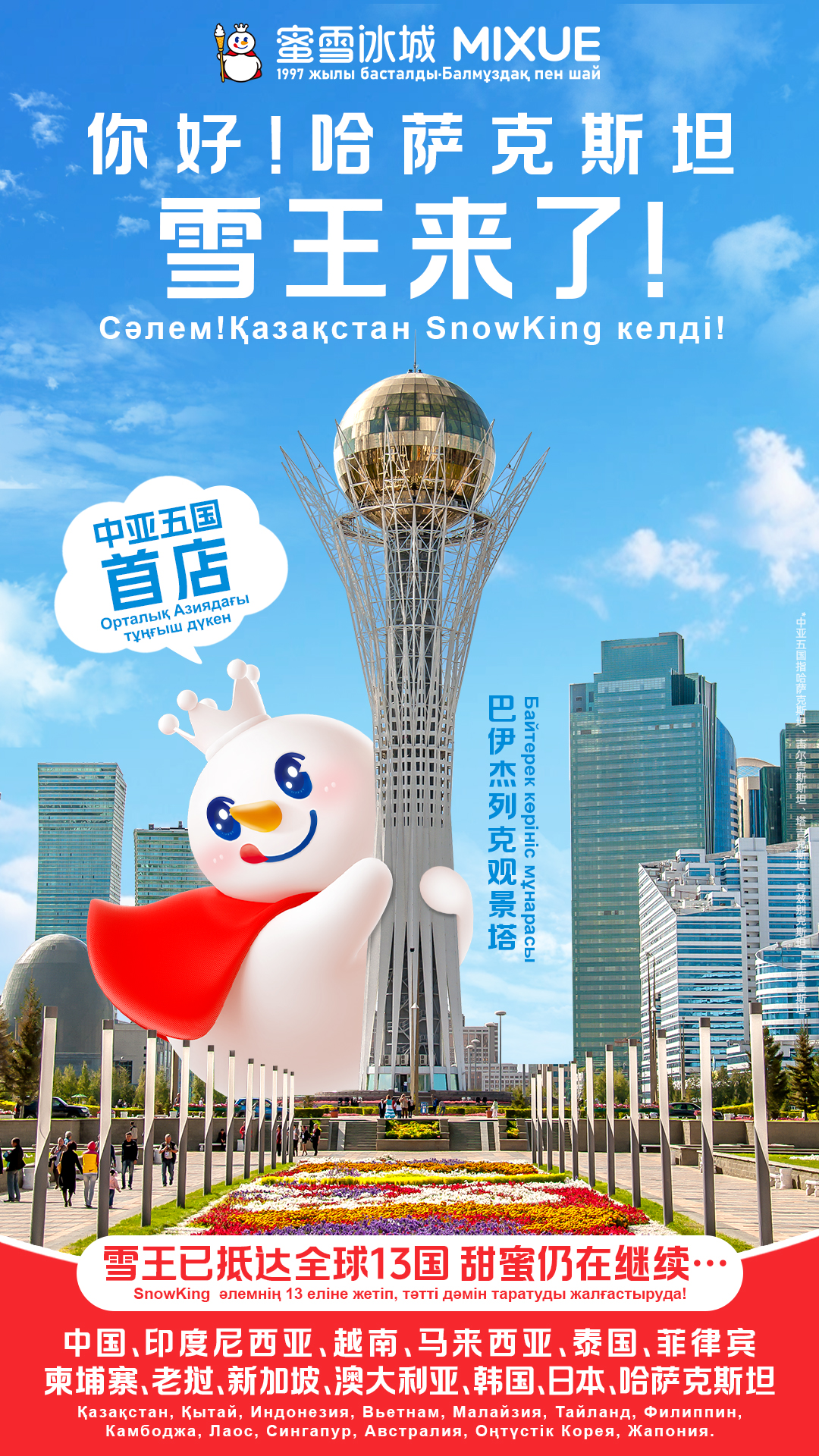 从郑州到亚洲,再到全球!2025年,雪王跨越山海,甜蜜抵达13国,哈萨克斯坦首店开业,让甜蜜风暴席卷全球!
